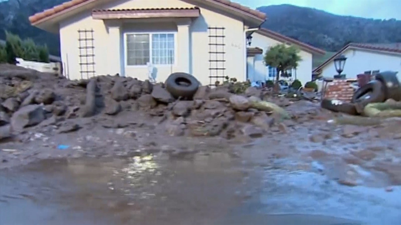 Bouře a déšť způsobily v kalifornském Camarillo Springs sesuvy půdy.