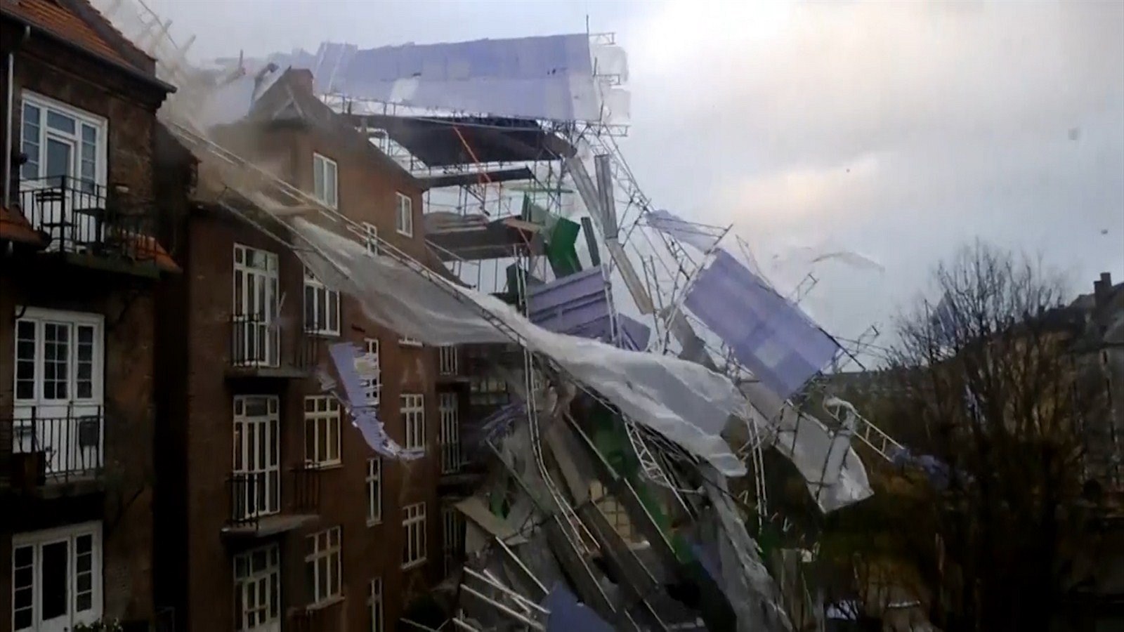 Bouře řádila v Evropě. V Dánsku strhla lešení z domu