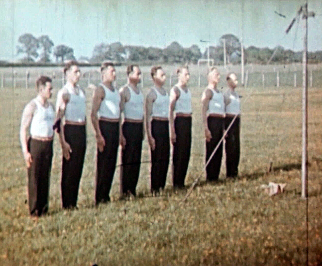 Stovky aktivních Sokolů se za druhé světové války zapojily také do zahraničního odboje. I oni nasazovali svoje životy v boji proti nacistickému Německu, řada z nich byla piloty československých perutí RAF. Na rozdíl od svých bratrů a sester v protektorátu mohli dál veřejně cvičit, což konzervativním Angličanům připadalo velmi zvláští. Na unikátních záběrech ze sbírek Vojenského historického ústavu můžeme vidět cvičení členů 310. stíhací perutě RAF na jaře 1943 na letišti Exeter. Nejmenší ze cvičenců a první na hrazdě je jedno z našich největších leteckých es, František Peřina.