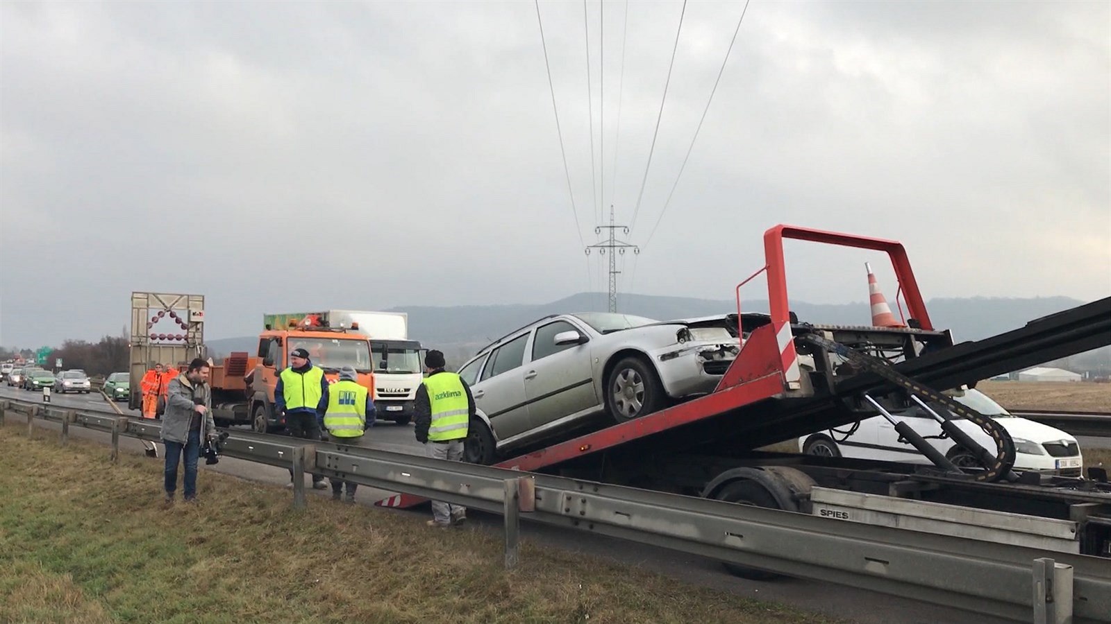 Na namrzlé dálnici D10 se srazila sanitka s pěti auty