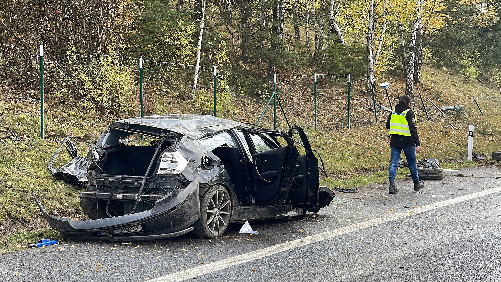 Na dálnici D10 u Brodců havaroval opilý řidič. Jeho auto vyletělo z dálnice, kde zdemolovalo asi 70 metrů oplocení. Řidiče z vraku vyprostili hasiči a do nemocnice ho musel transportovat vrtulníku.