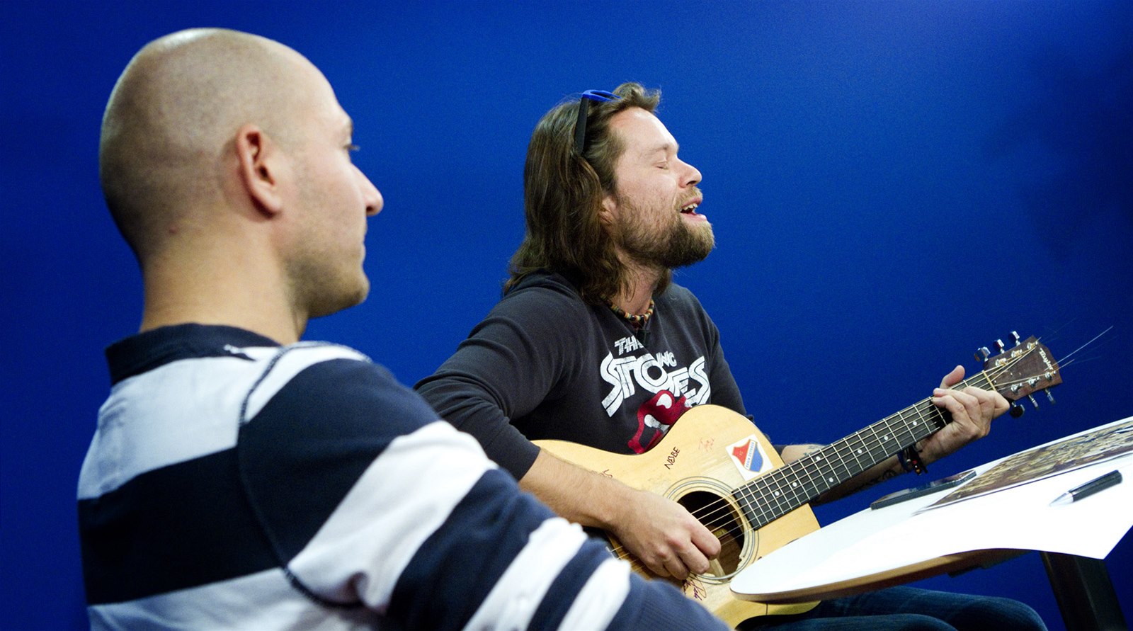 Frontman skupiny Kryštof Richard Krajčo ve studiu zazpíval