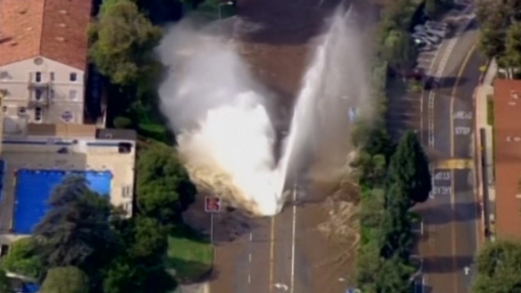Gejzír uprostřed silnice. Prasklý vodovod zatopil LA