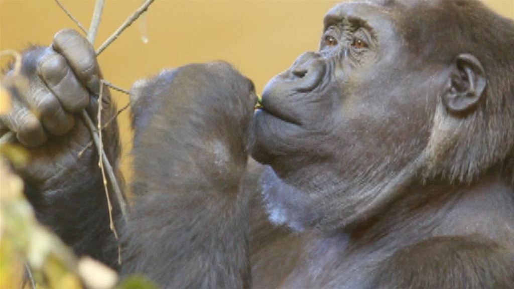 Gorily v zajetí okusují větvičky a spásají trávu