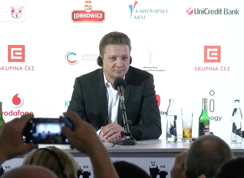 Úryvek z tiskové konference filmové hvězdy Jeremy Rennera a odpověď na otázku Mirky Spáčilové