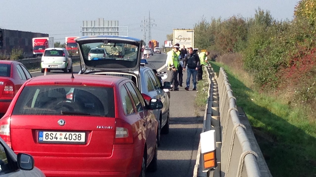 Kamion srazil na D5 silničáře