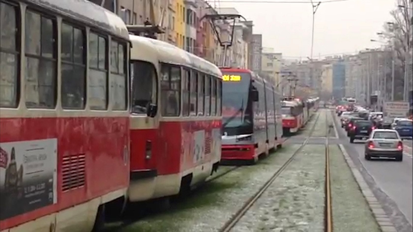 Kolaps v dopravě: v Praze stojí kolony tramvají