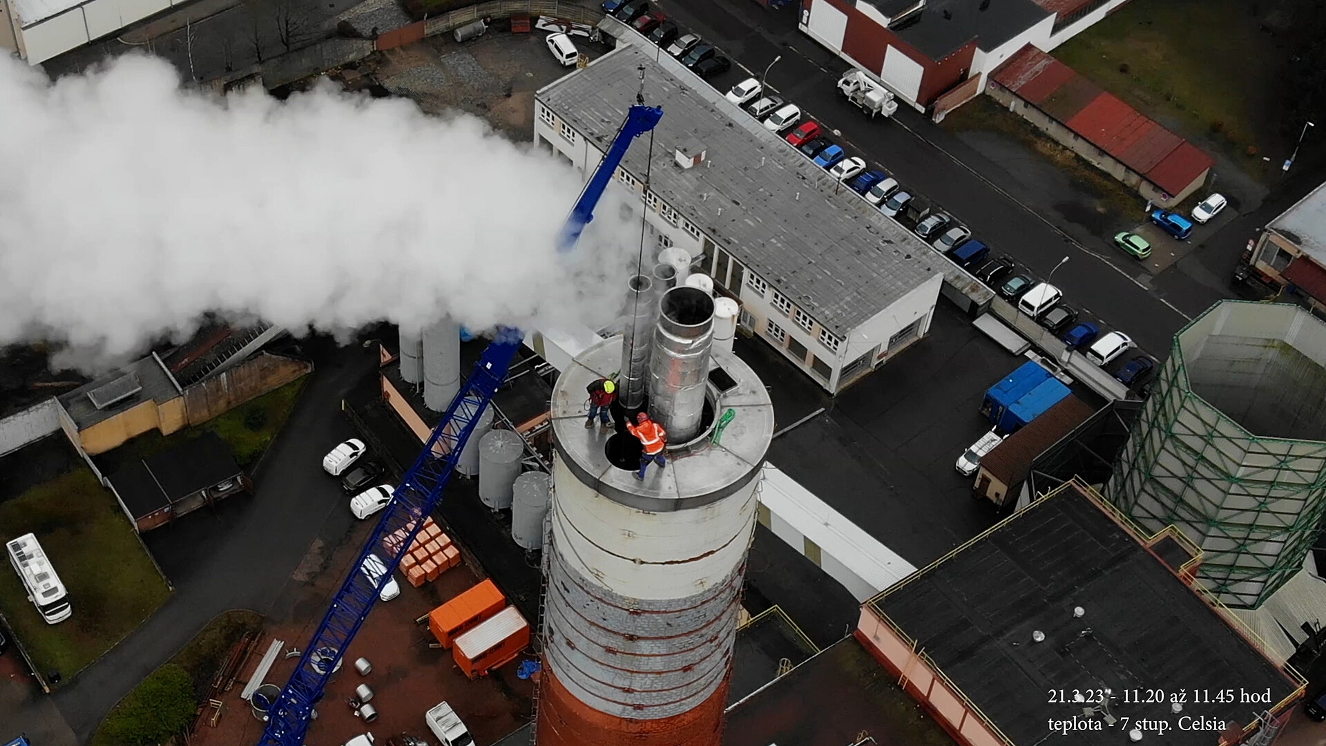 Podívejte se, jak vypadala stavba nového komínového spalinovodu Teplárny v Náchodě, který tvoří čtyři nerezové vložky instalované do komína ve 100metrové výšce.