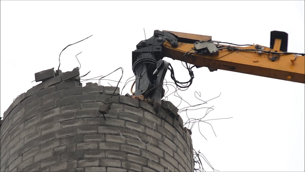 Komín ve Valašském Meziříčí boří těžká technika