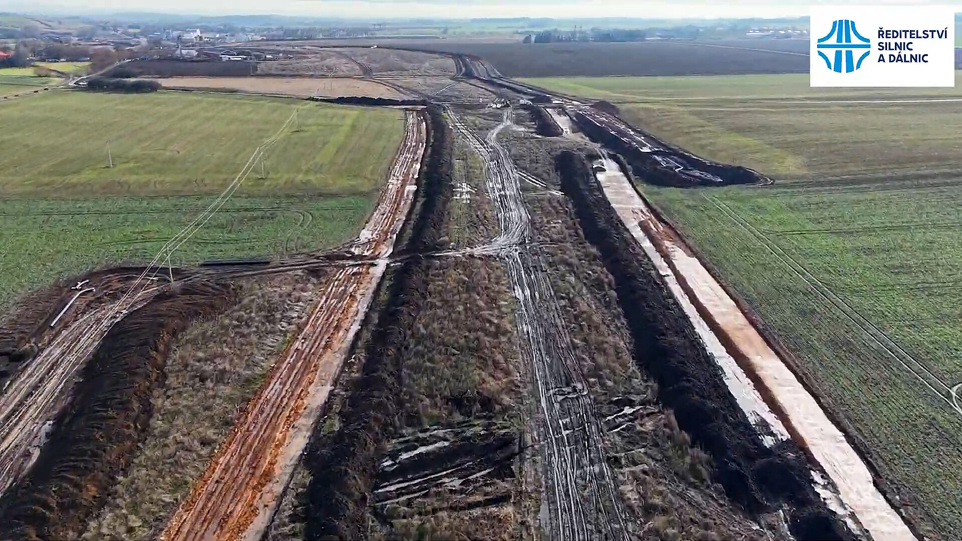 Dronové záběry z aktuálního průběhu stavby dálnice D35 napříč Pardubickým krajem.