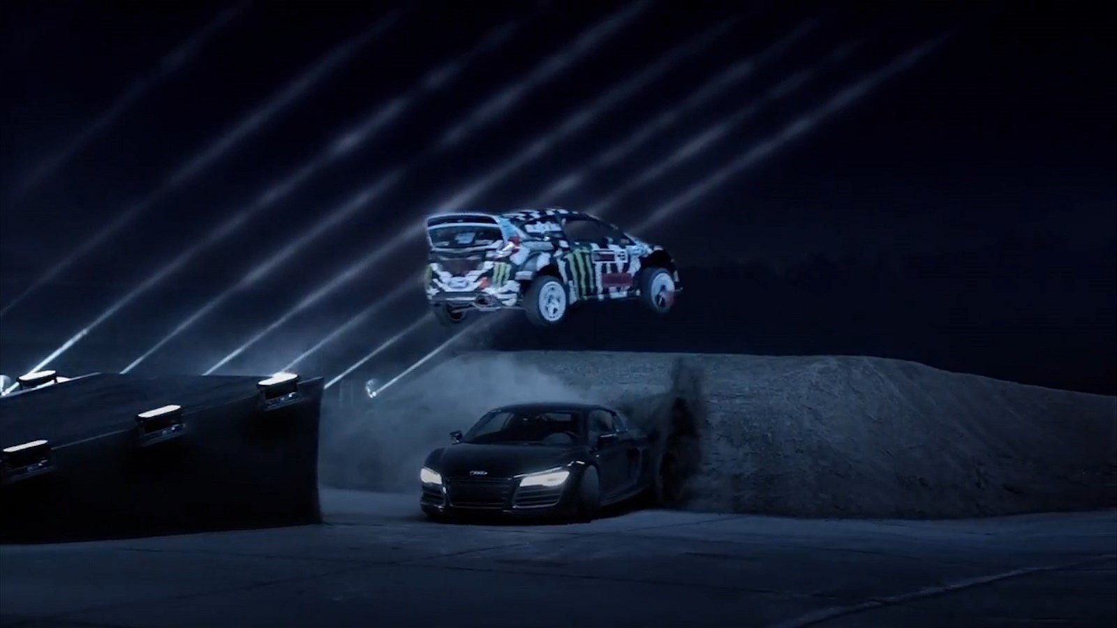 Lambo, Audi R8, Ken Block a stovky světel - olejáři mají nový spot