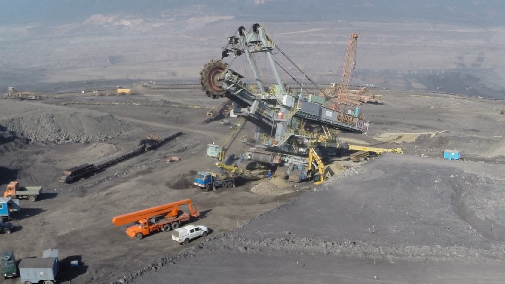 Letecké záběry zapadlého rypadla v lomu na Mostecku