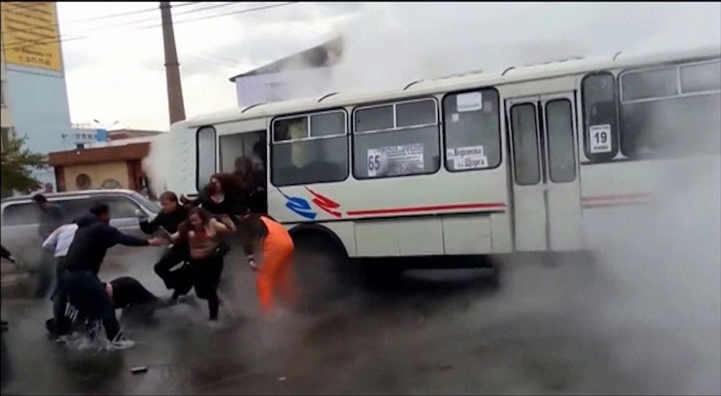 Lidé utíkali z autobusu, do kterého tryskala horká voda