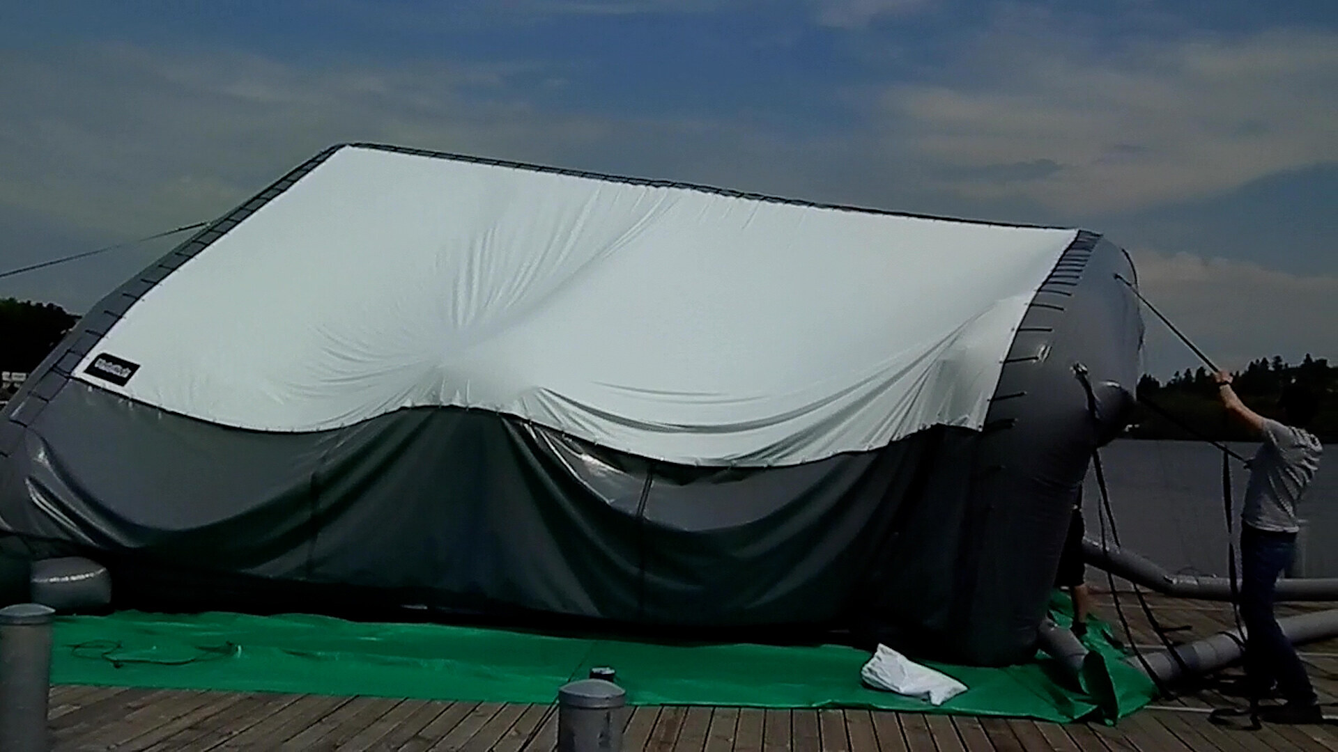 Na pláži Brněnské přehrady ve středu vyzkoušeli mobilní nafukovací kino, které by od července mohlo v Bystrci sloužit lidem.