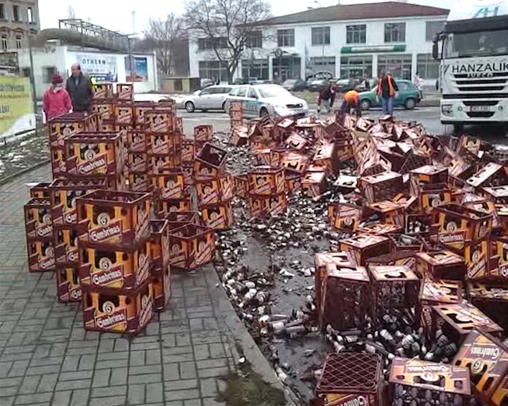 Na vysypané přepravky s pivem se vrhli zloději