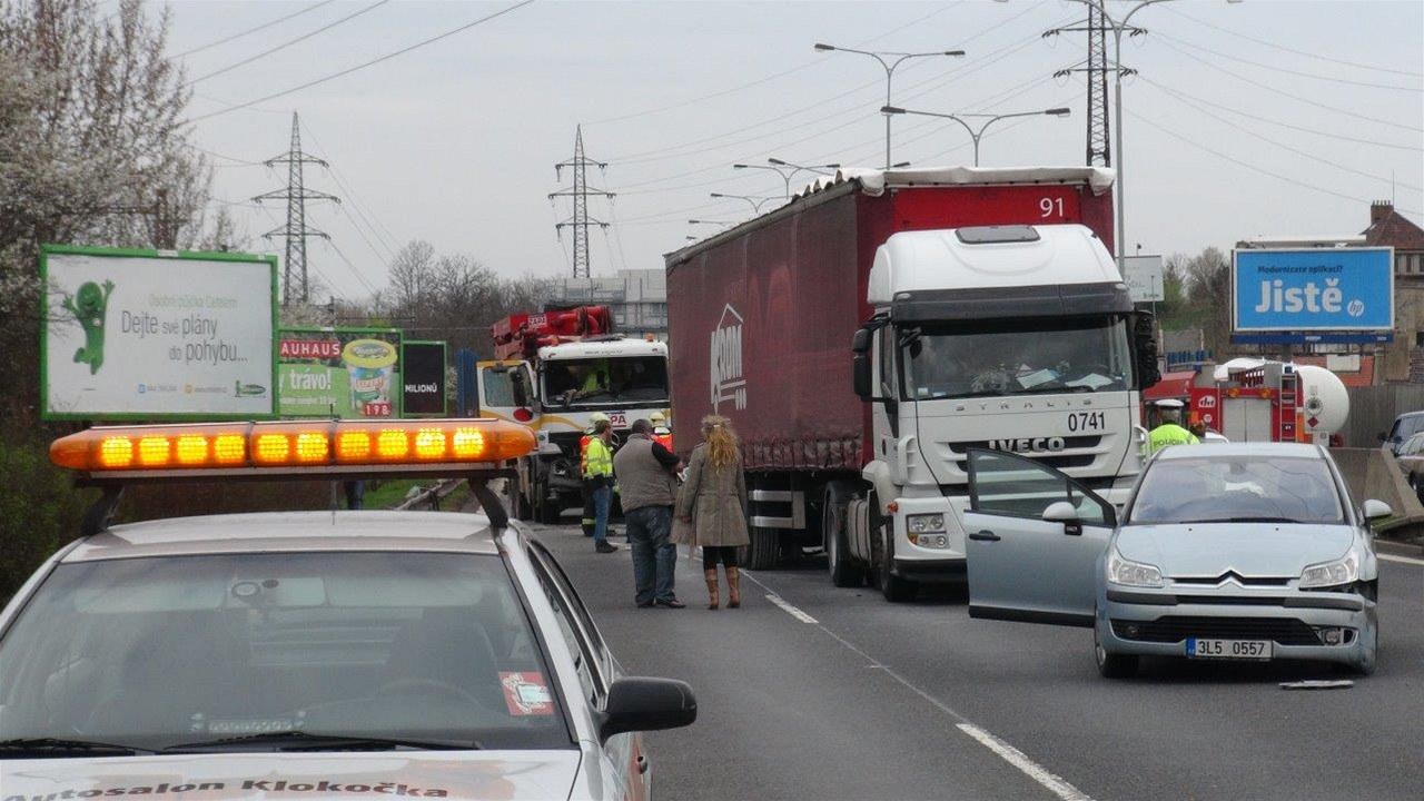 Nehoda cisterny, kamionu a dvou osobáků na Jižní spojce
