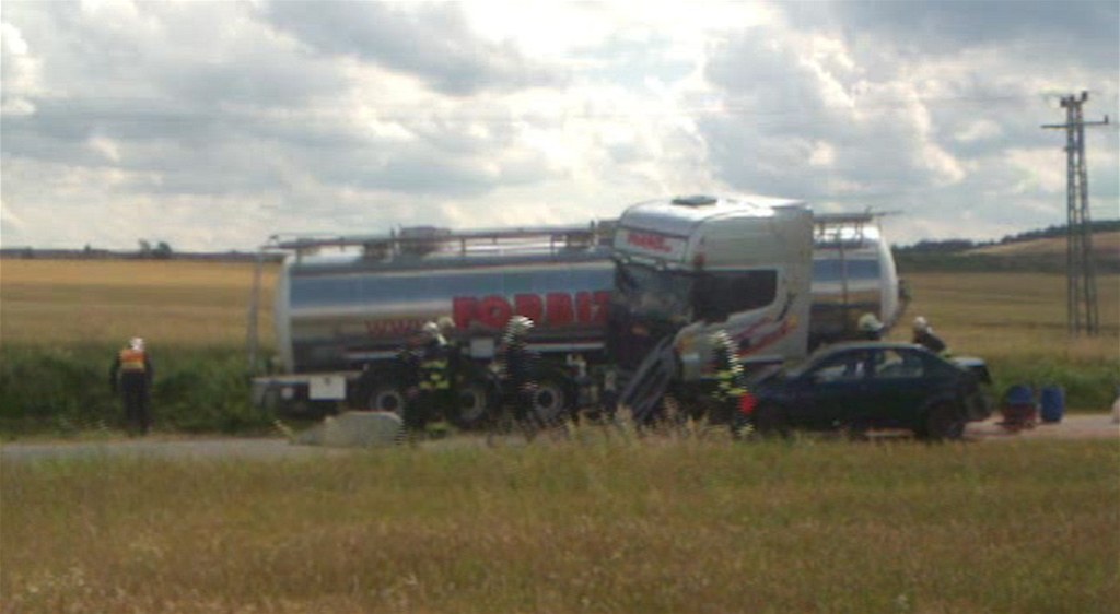 Náklaďák smetl u mýtné brány auta i s mužem