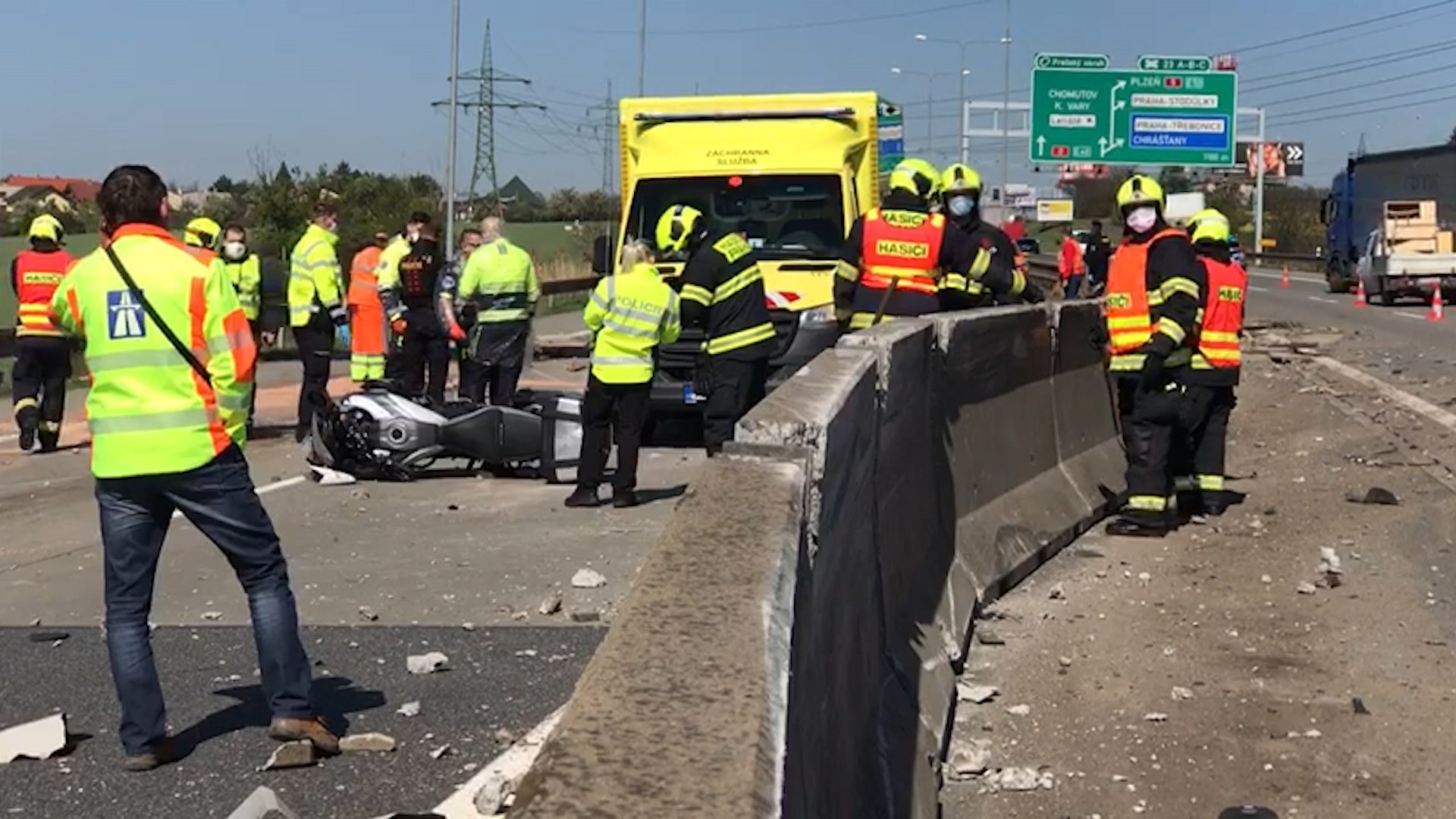 Na 21. kilometru Pražského okruhu se z nákladního auta vysypal náklad, najelo do něj několik aut a motorka. Směr na Brno stojí, směr na D5 je omezen. Podle záchranářů se zranili dva motorkáři, oba ošetřili při vědomí. Jeden měl poranění v oblasti hrudníku, druhý horní končetiny.