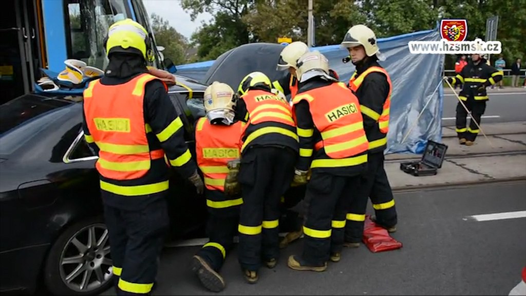 Nehoda tramvaje a vozu Audi v Ostravě