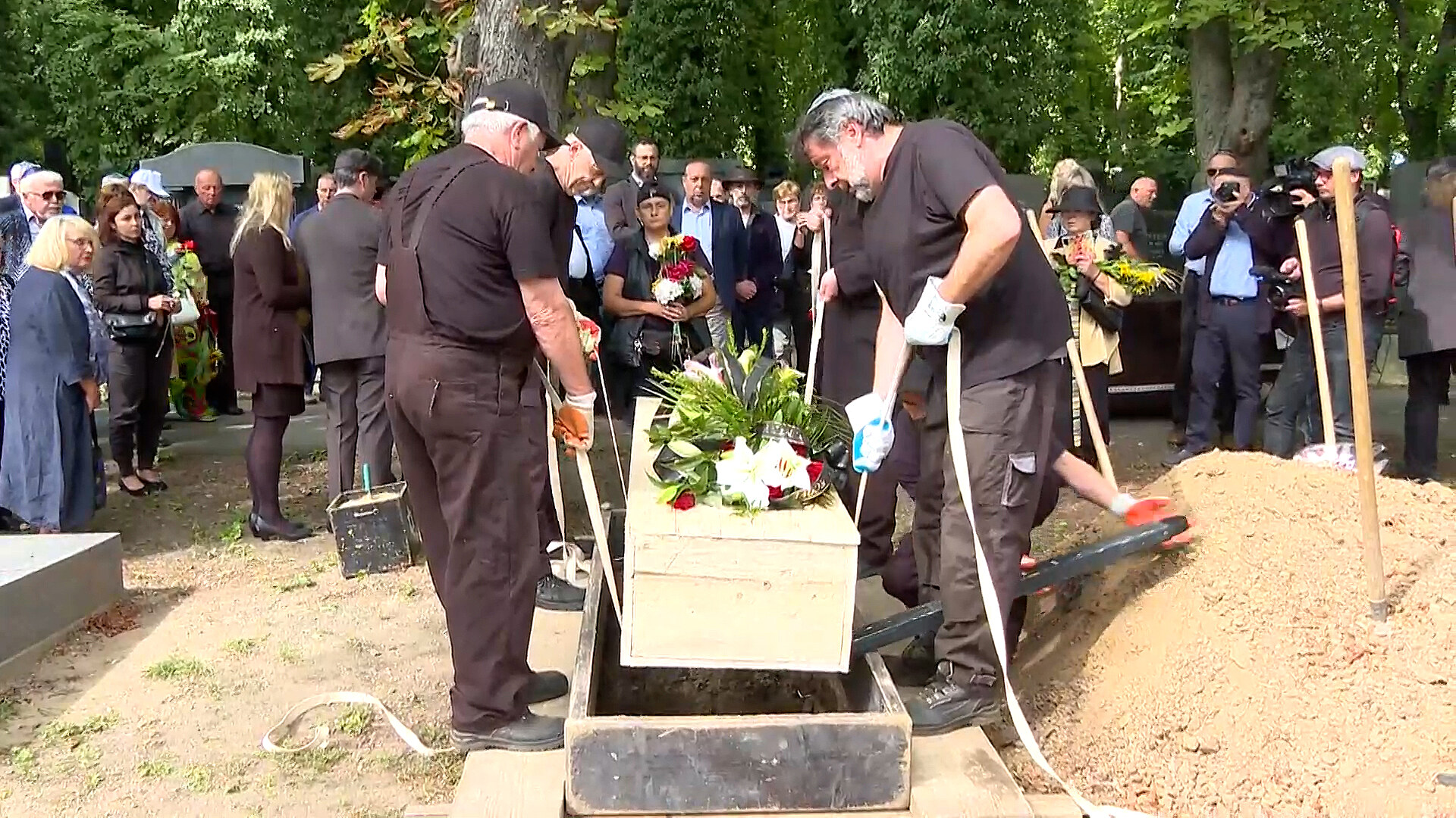 Už před půl druhou se na Novém pražském židovském hřbitově shromáždili smuteční hosté. Ze známých tváří dorazila třeba zpěváci Václav Neckář, Petr Janda, Monika Absolonová, herec Jakub Kohák, herečka Jitka Zelenohorská, moderátoři Saskia Burešová a Aleš Cibulka či publicista Ondřej Konrád...