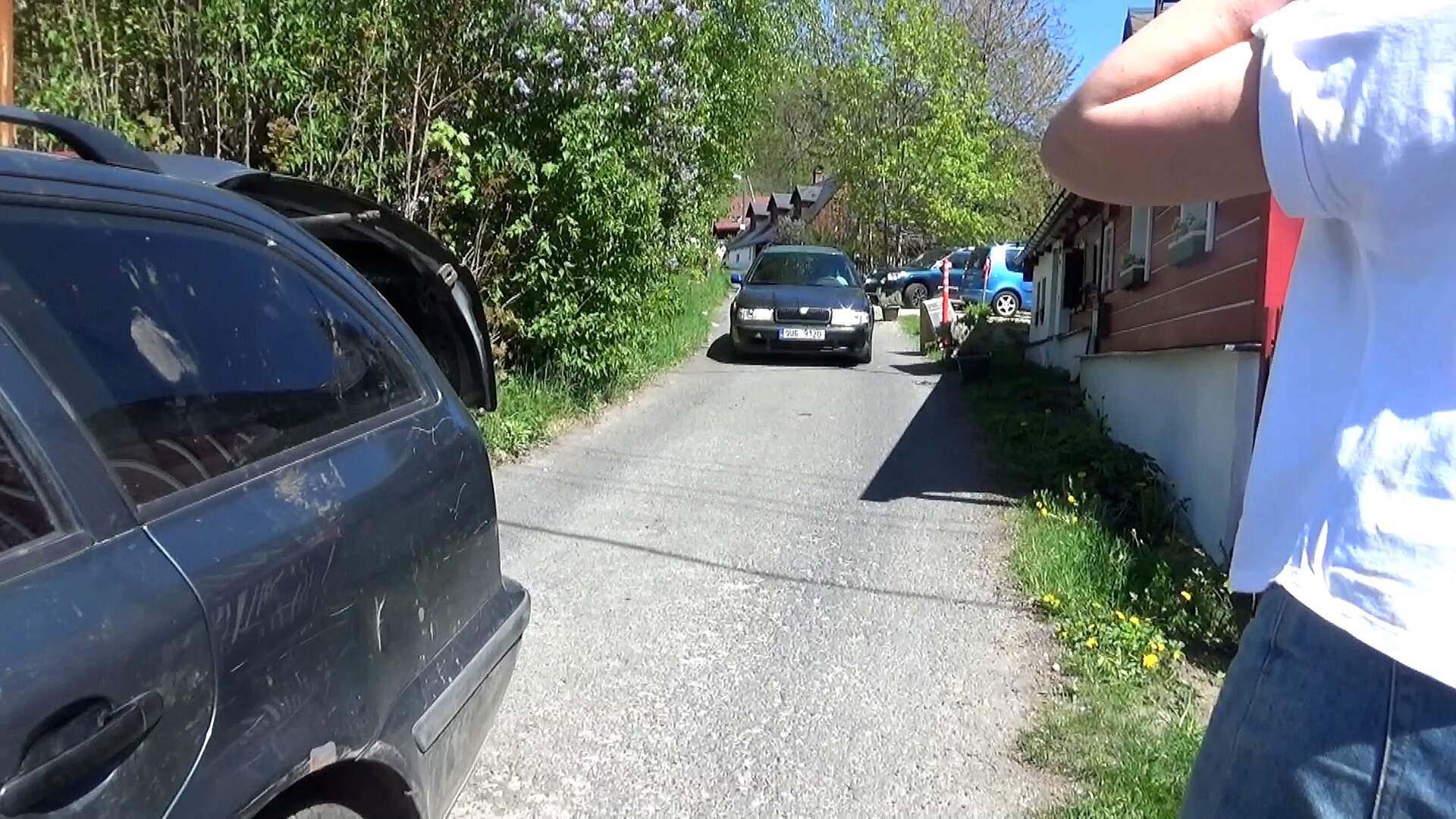 Sotva devadesát centimetrů od dveří roubenky vede objízdná trasa. Řidiči aut či motocyklů tu podle místních ohrožují lidi i domácí zvířata, nadto projíždějí územím s chráněnými mloky. Manželé Bernatt-Reszczyńští si kvůli uzavírce mostu přes řeku Smědou v Bílém Potoce na Frýdlantsku dopisují s mnoha úřady. Dosud však nenašli žádný, který by jim pomohl situaci zlepšit.