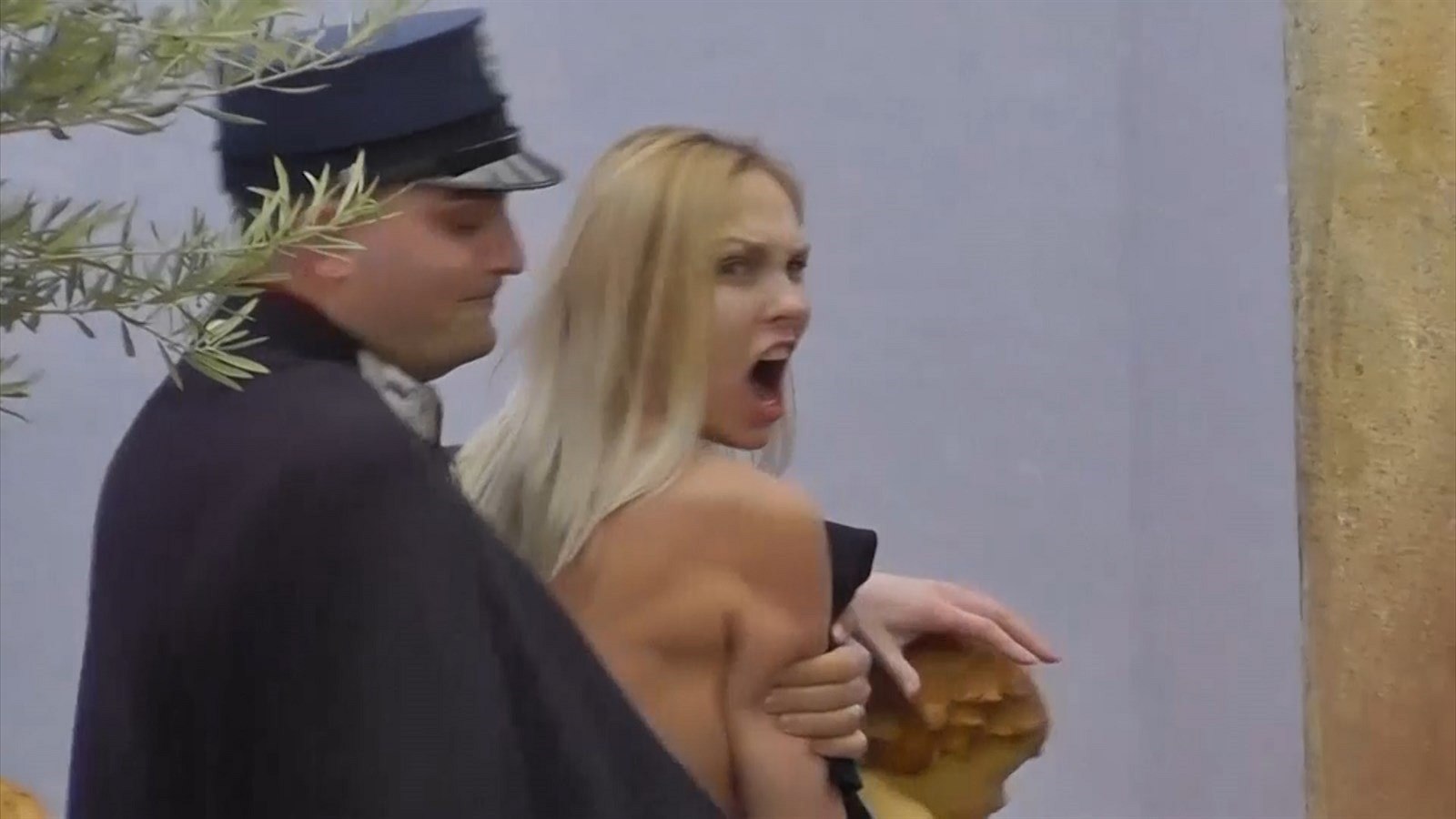 Obnažená členka Femen v Římě kradla sošku Ježíška
