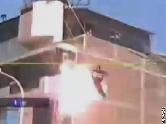 Peruánská policistka při výcviku slaňování zavadila o dráty s vysokým napětím. Proud jí težce popálil, ale přežila
