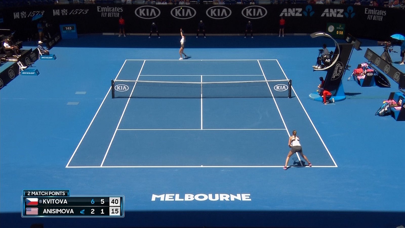 Petra Kvitová přehrála 6:2, 6:1 17letou Američankou Anisimovou a postupuje mezi osmičku nejlepších.