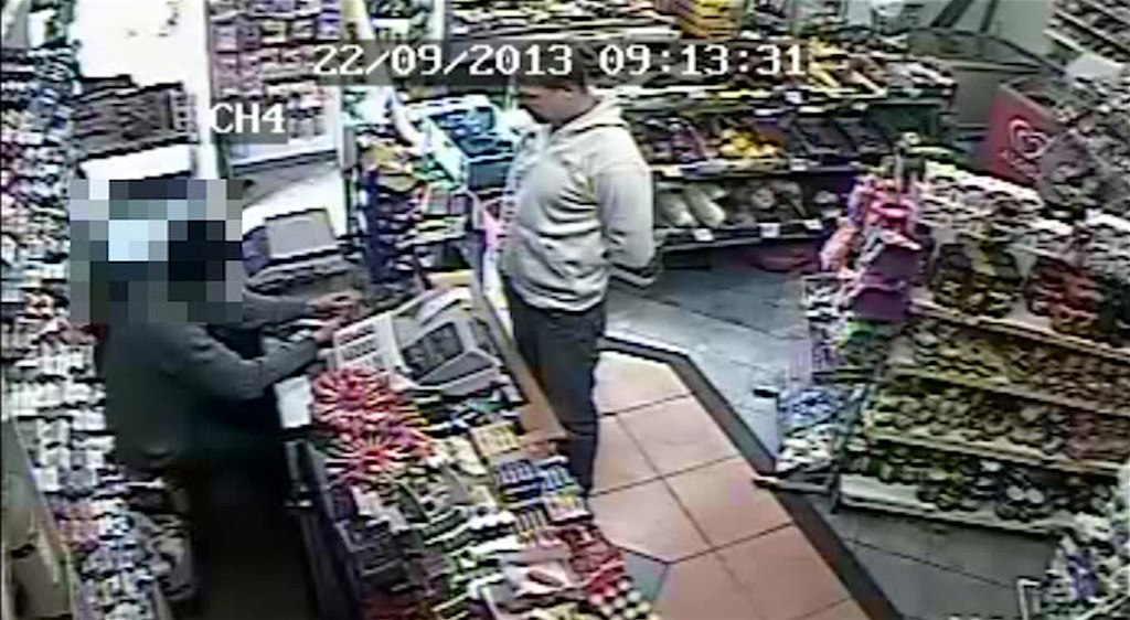 Podezřelý muž kupuje ve večerce cigarety
