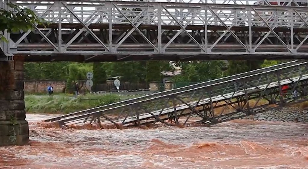 Pohroma v Jaroměři. Ve městě se zřítil most
