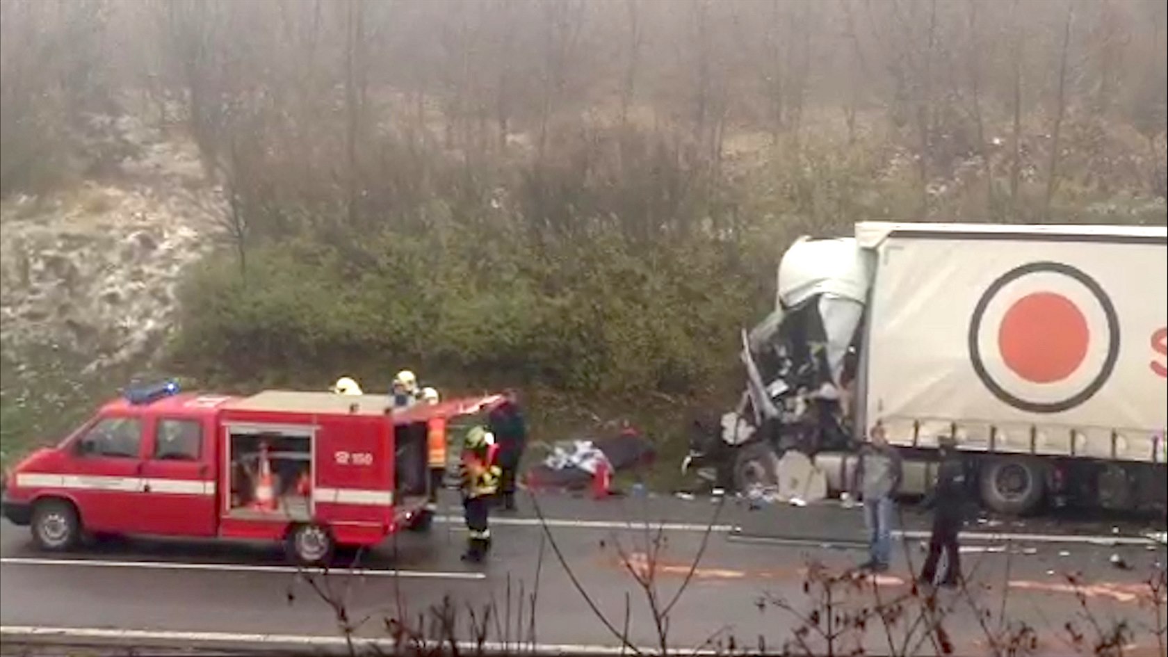 Při srážce kamionů na D5 zemřel řidič