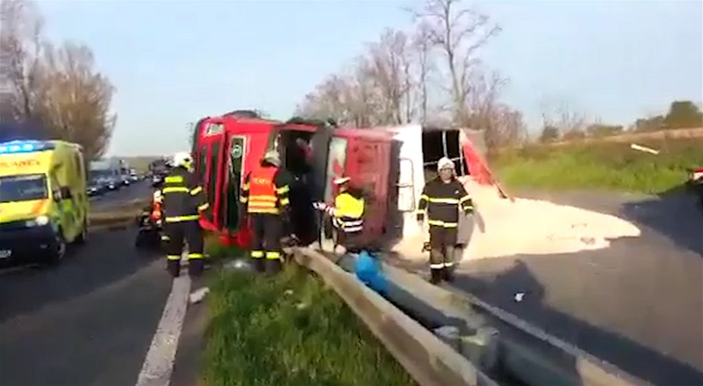 Silnici R10 zablokoval převrácený kamion