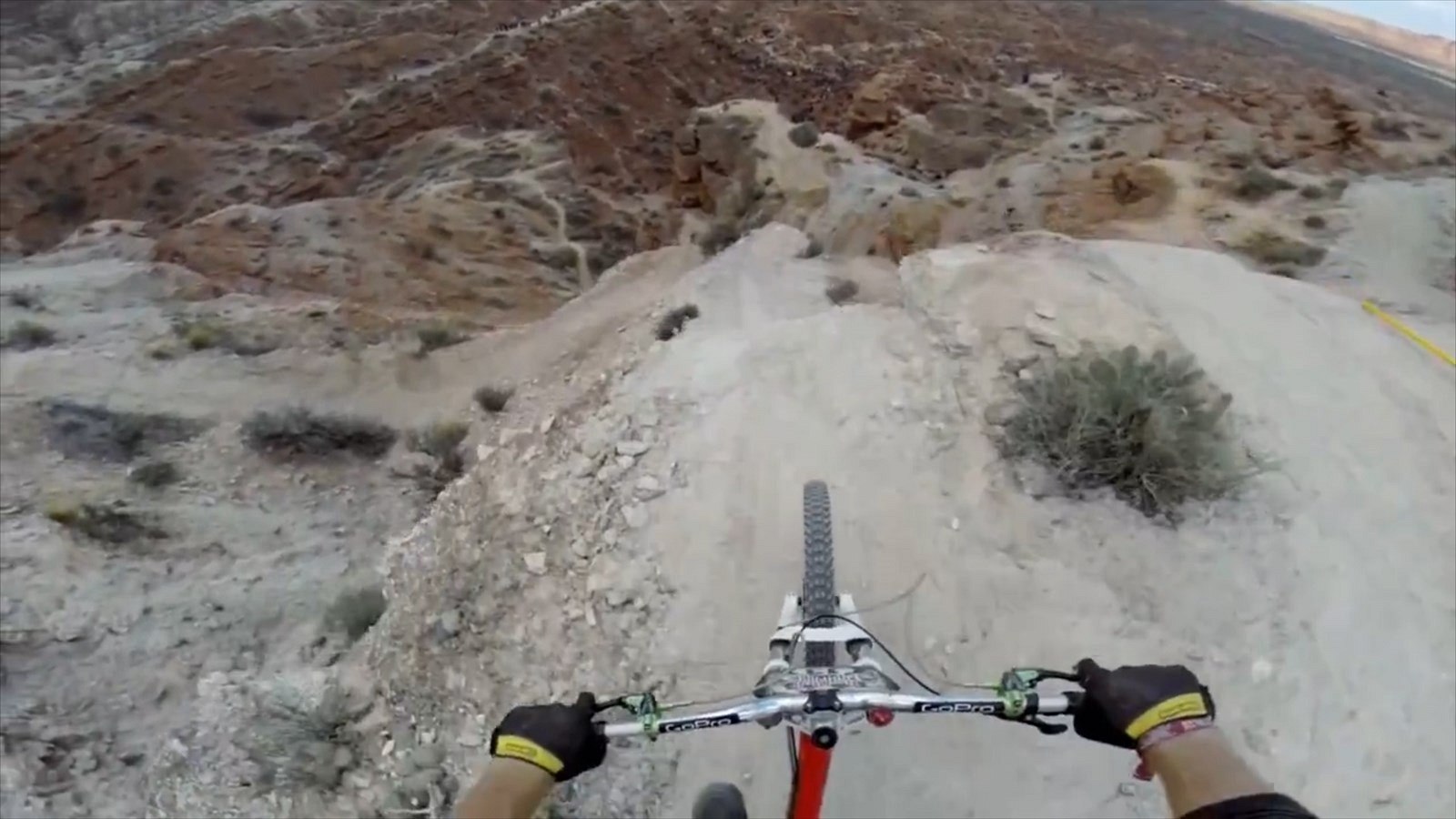 Sjezd z prudké skály pohledem samotného bikera