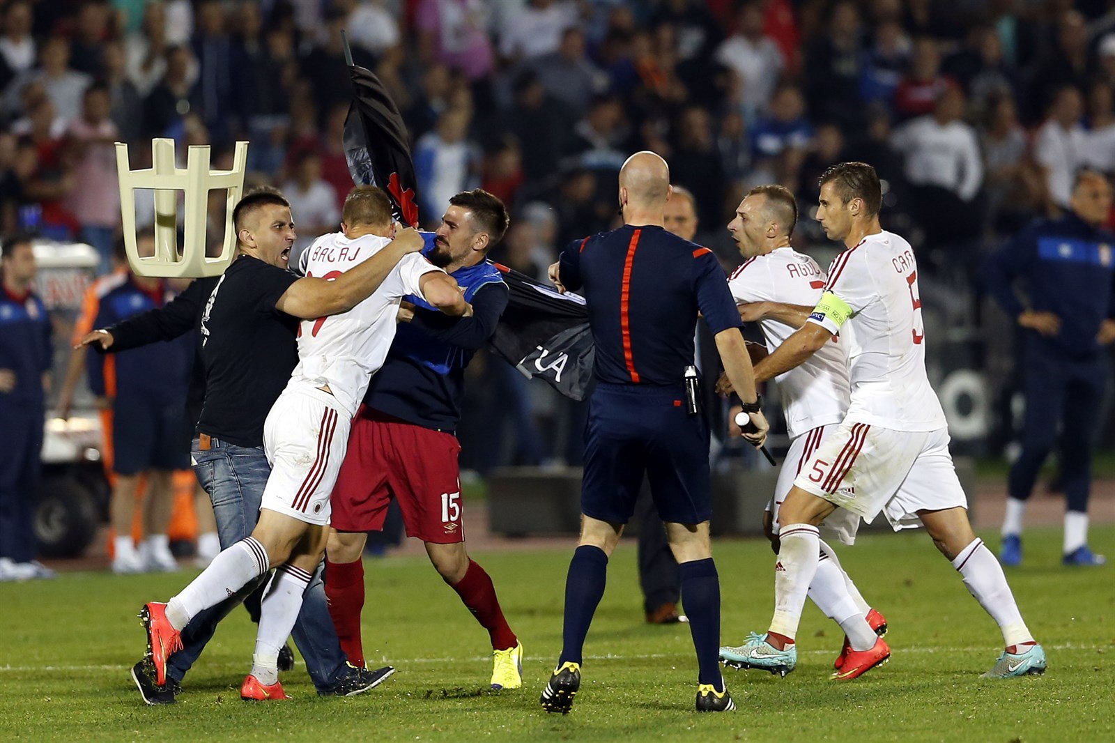 Srbové a Albánci nedohráli zápas. Kvůli stržené vlajce