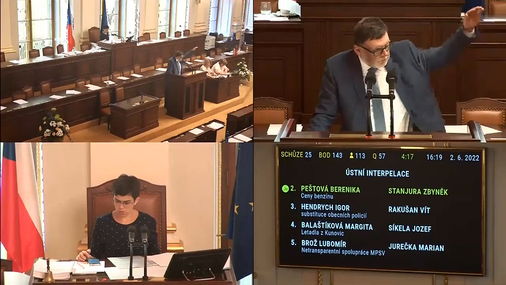 Během sněmovních intepelací odpovídal ministr financí Stanjura na otázku poslankyně Peštové /ANO/, proč u nás byla sleva na spotřební dani jen 1,50 Kč a v Německu 8 Kč. „Němci mohli slevit víc, protože jejich daň byla původně vyšší,“ řekl. „Nyní je v obou republikách stejně vysoká.“