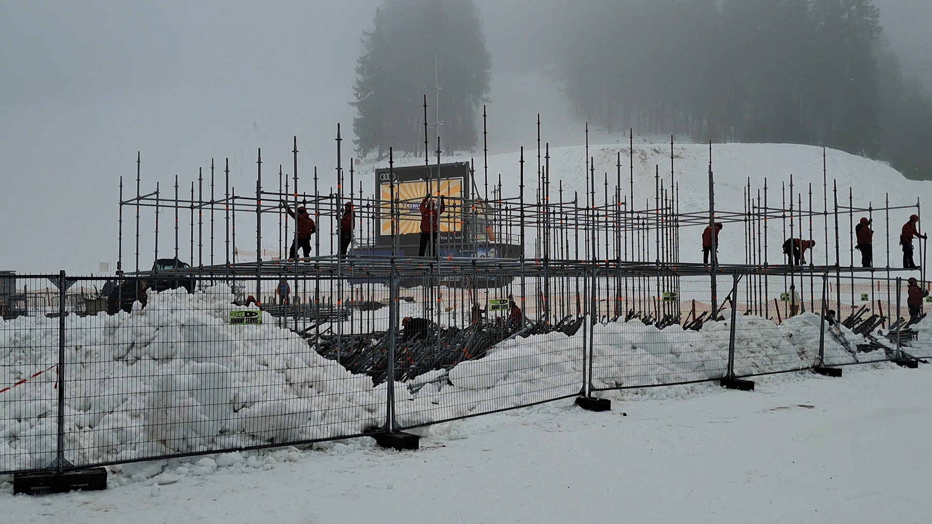 Ve Svatém Petru roste závodní městečko, už za týden se do Špindlerova Mlýna vrátí Světový pohár v alpském lyžování žen. Na dojezdu budou do konce týdne hotové dvě tribuny, novinkou je tribuna Šárky Strachové na malém hanku uprostřed sjezdovky. Staví se stany pro závodnice a novináře, závodní černá sjezdovka už je připravená, organizátoři ji zalili vodou, aby vznikla kompaktní vrstva, od soboty pro veřejnost už uzavřená.