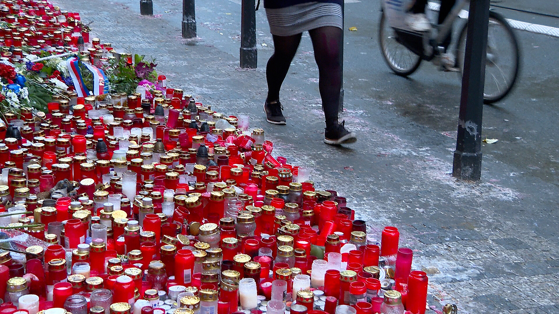 V pátek 17.11. probíhala na Národní třídě vzpomínka na studentskou demonstraci 17. listopadu 1989. Lidé zapalovali svíčky u pomníku policejního zásahu proti studentům. Svíčky hořely až k tramvajovým kolejím. Hned v sobotu je museli začít odstraňovat. V pondělí dopoledne jich tu stále bylo obrovské množství.