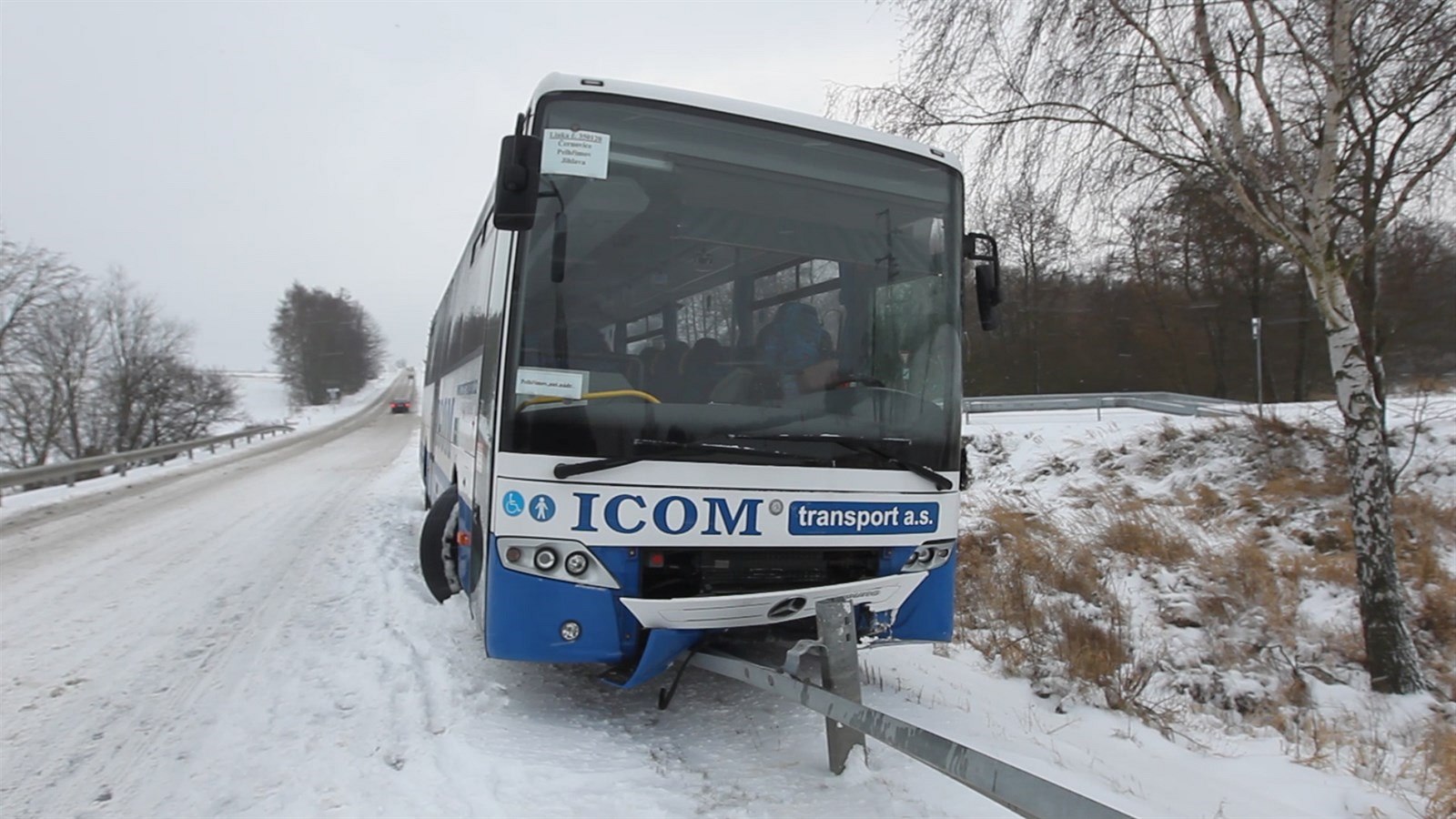 U Vyskytné na Vysočině kvůli sněžení boural autobus