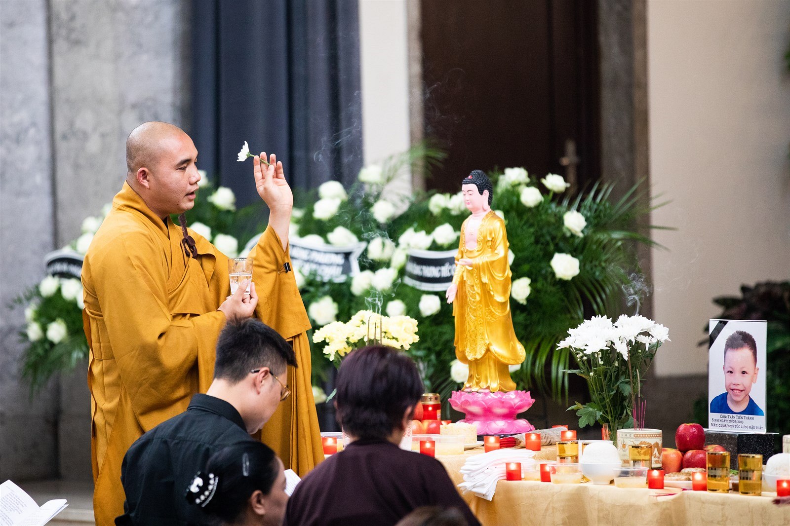 Ve velké obřadní síni strašnického krematoria v Praze se v úterý vietnamská komunita naposledy rozloučila s dvěma chlapci, kteří 2. srpna utonuli v jezeru Lhota nedaleko Prahy. Pohřeb dětí ve věku pět a sedm let měl dvě částí. První část obřadu byla ve znamení buddhismu, druhá podle evropských zvyklostí.