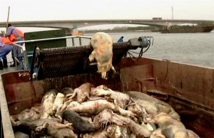 V čínské řece plavaly stovky mrtvých vepřů