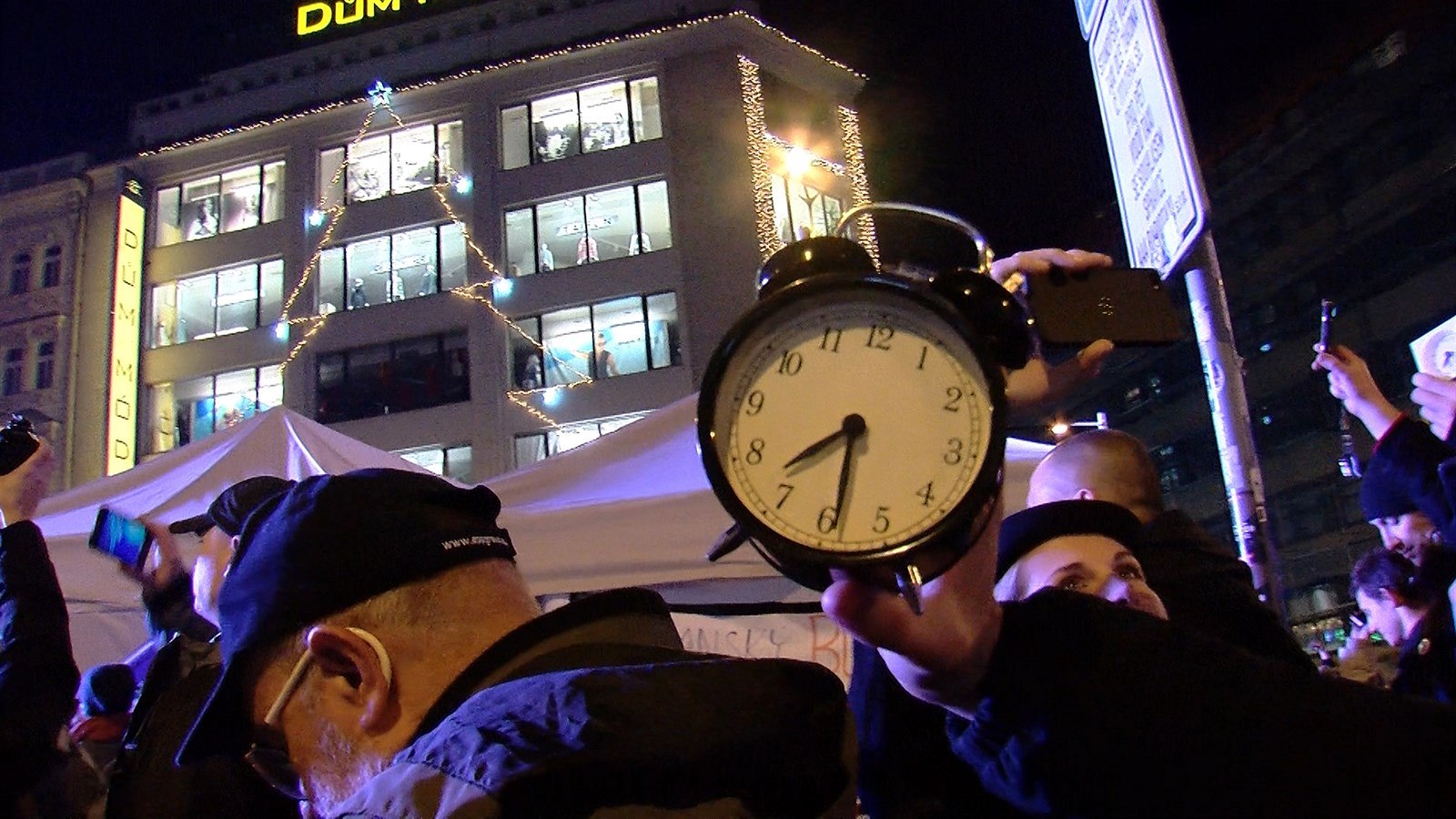 Václavským náměstím se rozeznělo zvonění budíku