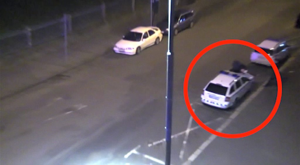 Vandal hodil popelnici na auto karlovarských strážníků