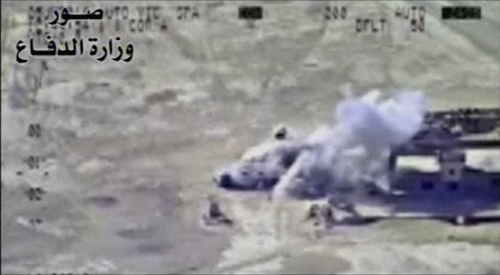 Záběry iráckého letectva, které bombarduje islamistické pozice