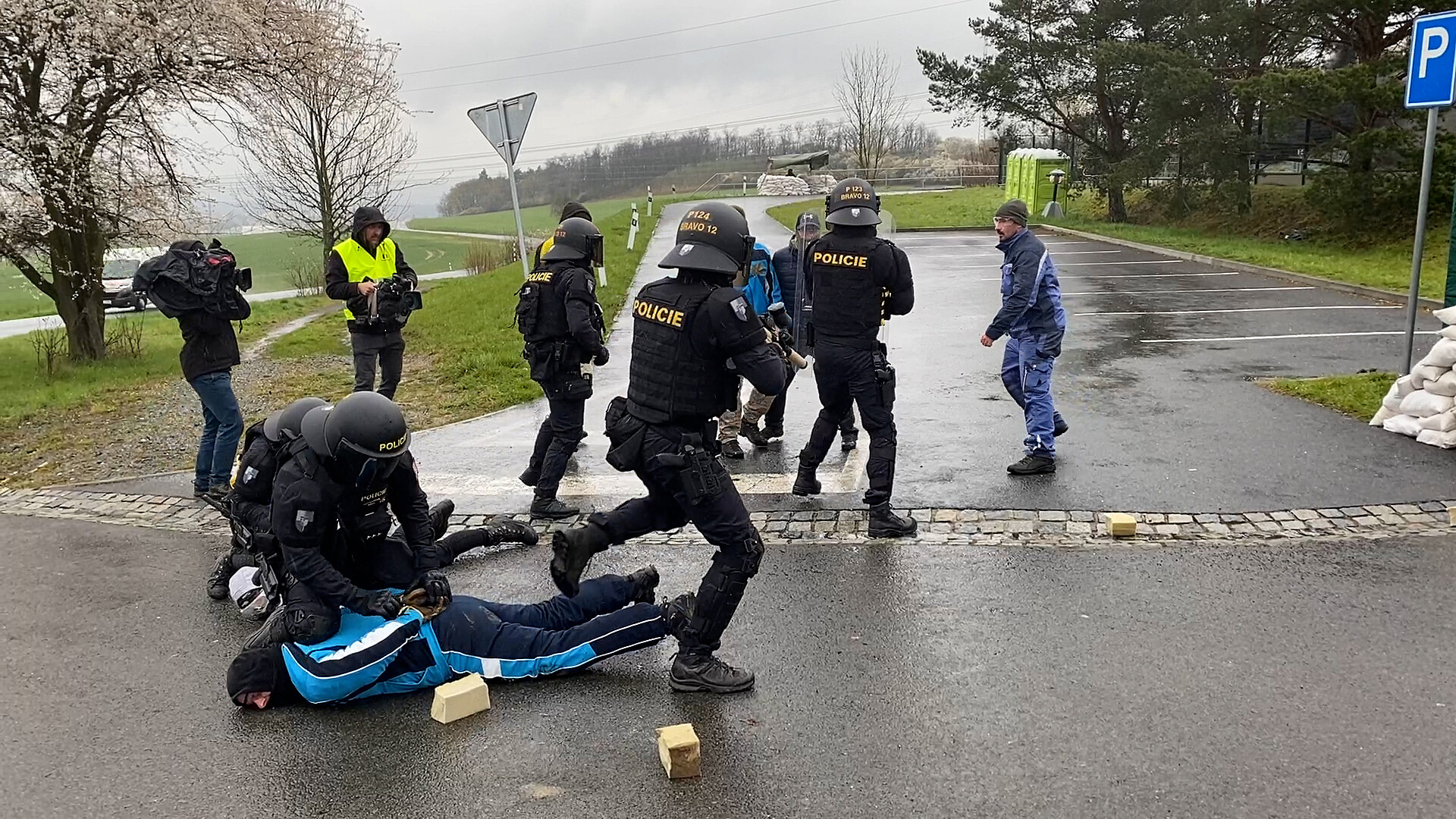 Zátarasy před vjezdem do rozvodny, z pytlů vybudovaná strážní stanoviště kolem celého areálu a všude desítky ozbrojených lidí ve vojenských uniformách. Tak to od začátku týdne vypadá u rozvodny hned vedle frekventované silnice spojující Plzeň a Chrást. Páteční obranou rozvodny před rozzuřenými demonstranty vyvrcholilo velké cvičení vojenských aktivních záloh v Plzeňském kraji.
