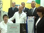 Bývalý desetibojař Robert Změlík si dnes převzal dres Báry Špotákové, ve kterém vyhrála zlatou olympijskou medaili. Získal ho v charitativní aukci iDNES.cz, konečná cena se vyšplhala na 330 tisíc korun. Výtěžek je určený pro spinální kliniku Fakultní nemocnice Motol. Právě zde proto předání dresu proběhlo