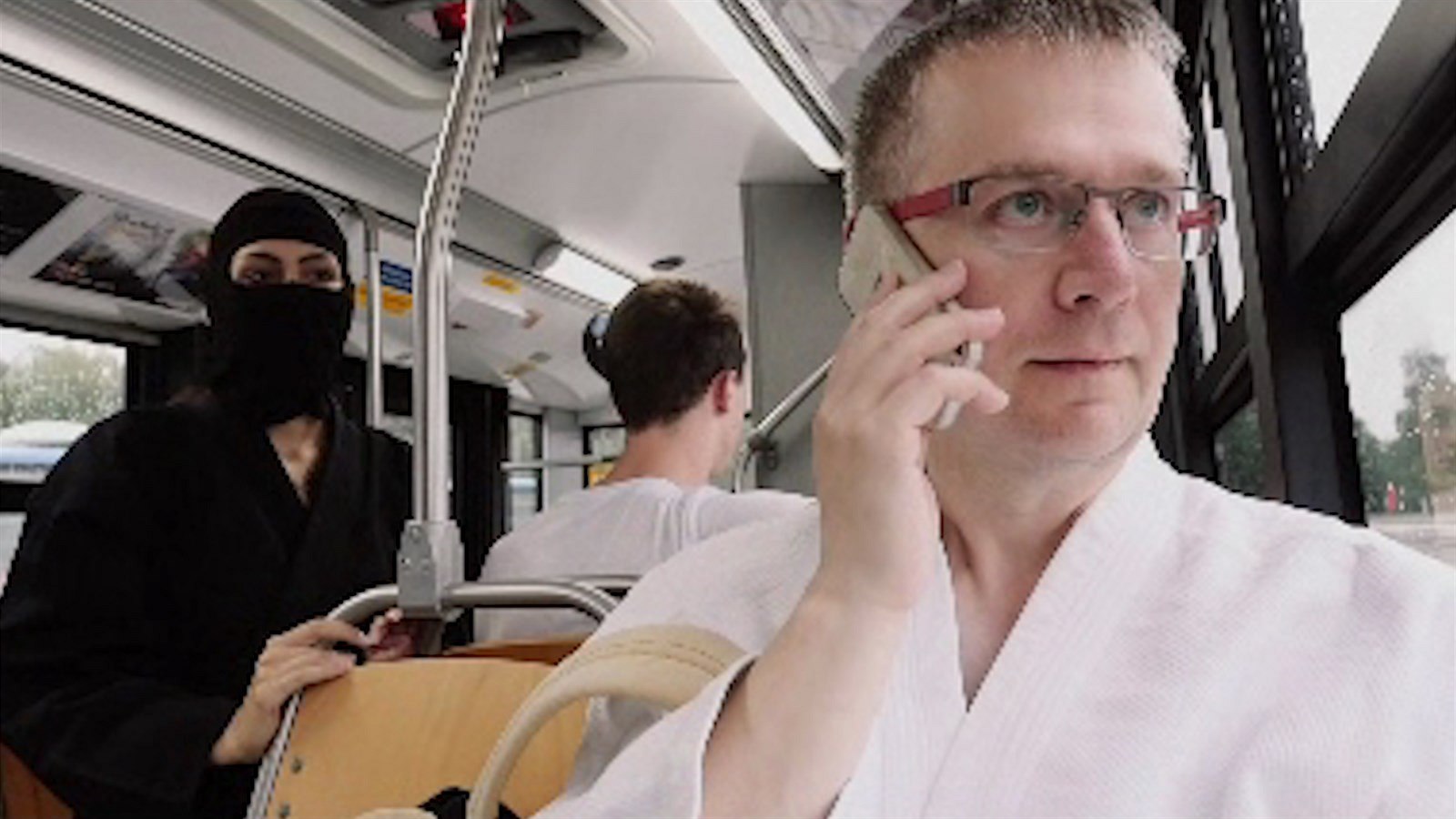 Mezi regály v supermarketu se prochází muž v černém oděvu asijského bojovníka. O kousek dál dvojice v bílém kimonu vybírá kávu. Stačí chvíle nepozornosti a zákeřný kapsář v černém bere z kabelky peněženku. Vše emotivním hlasem z televizního studia popisuje komentátor jako souboj zákazníků se zloději.