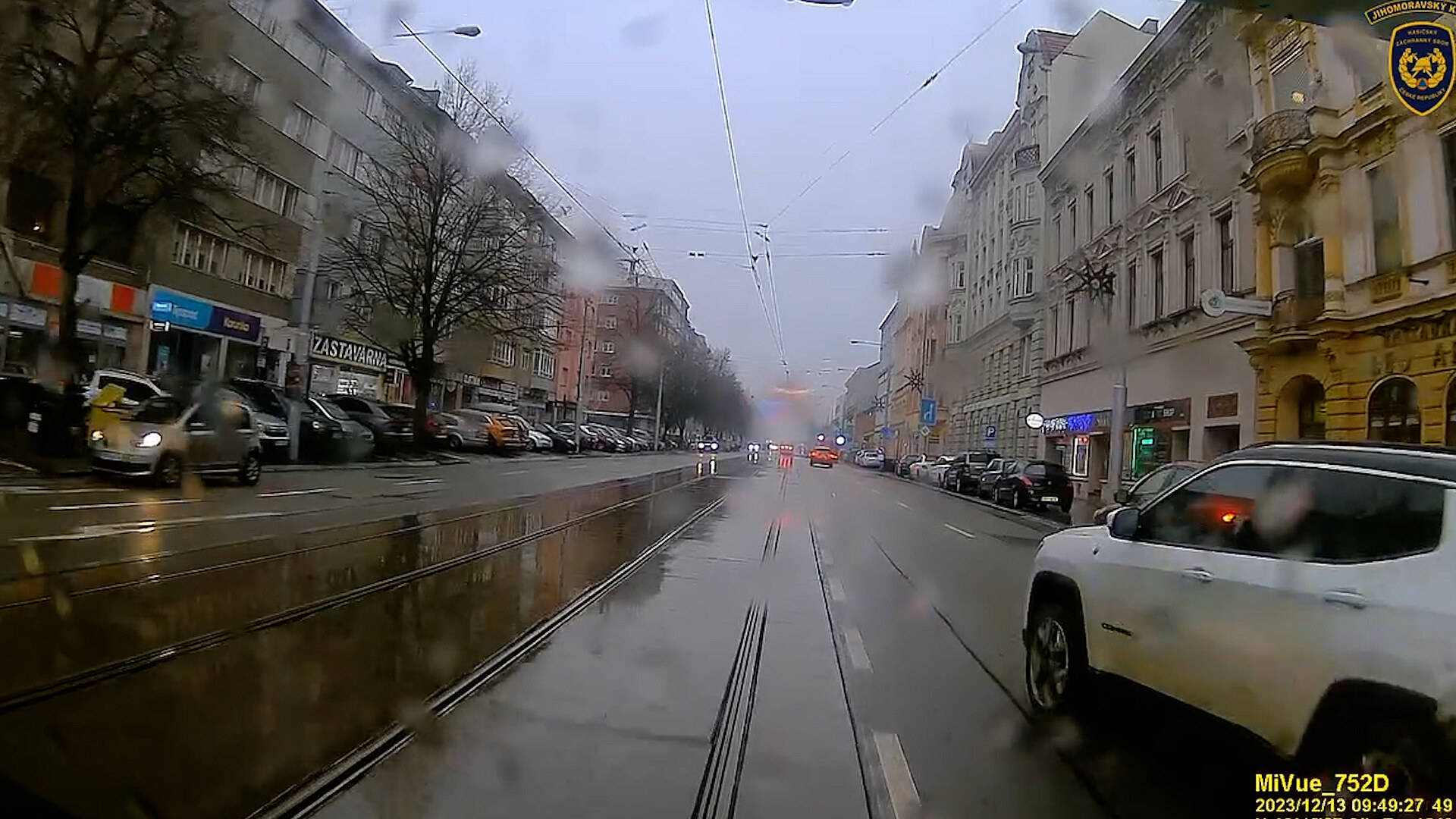 Hasičský vůz spěchající frekventovanou brněnskou ulicí k zásahu se jen těšně vyhnul náhle vybočujícímu autu. Srážce zabránil na poslední chvíli pohotovým manévrem.