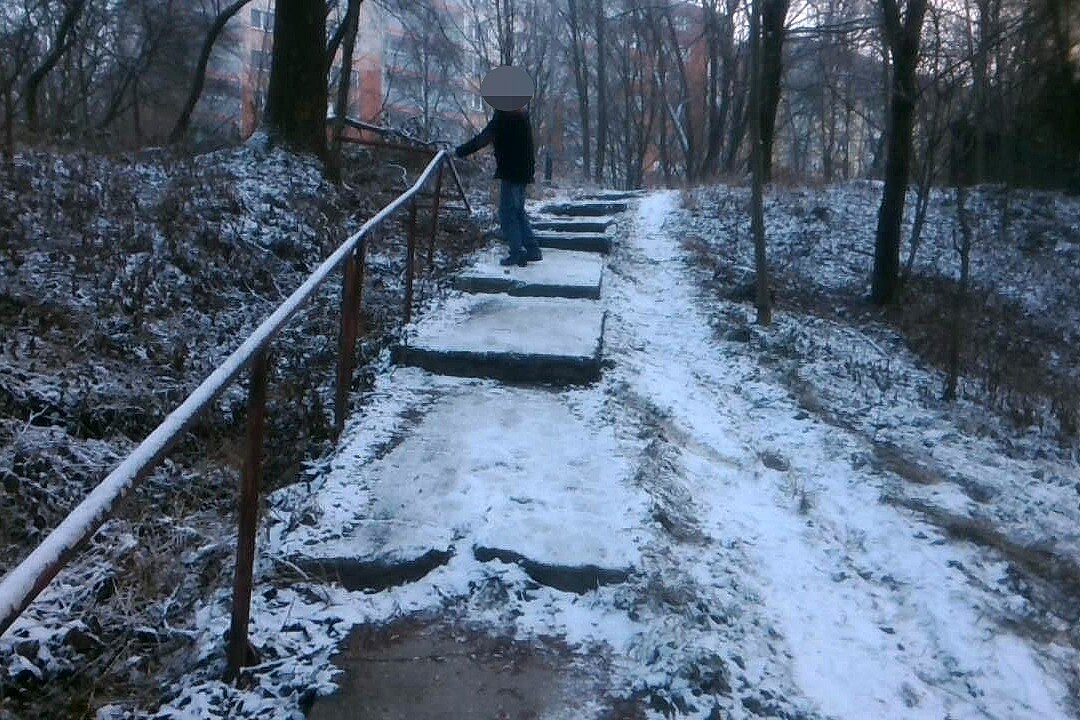 Opilý ostravský řidič sjel v parku schody, zastavila ho mez nad cestou