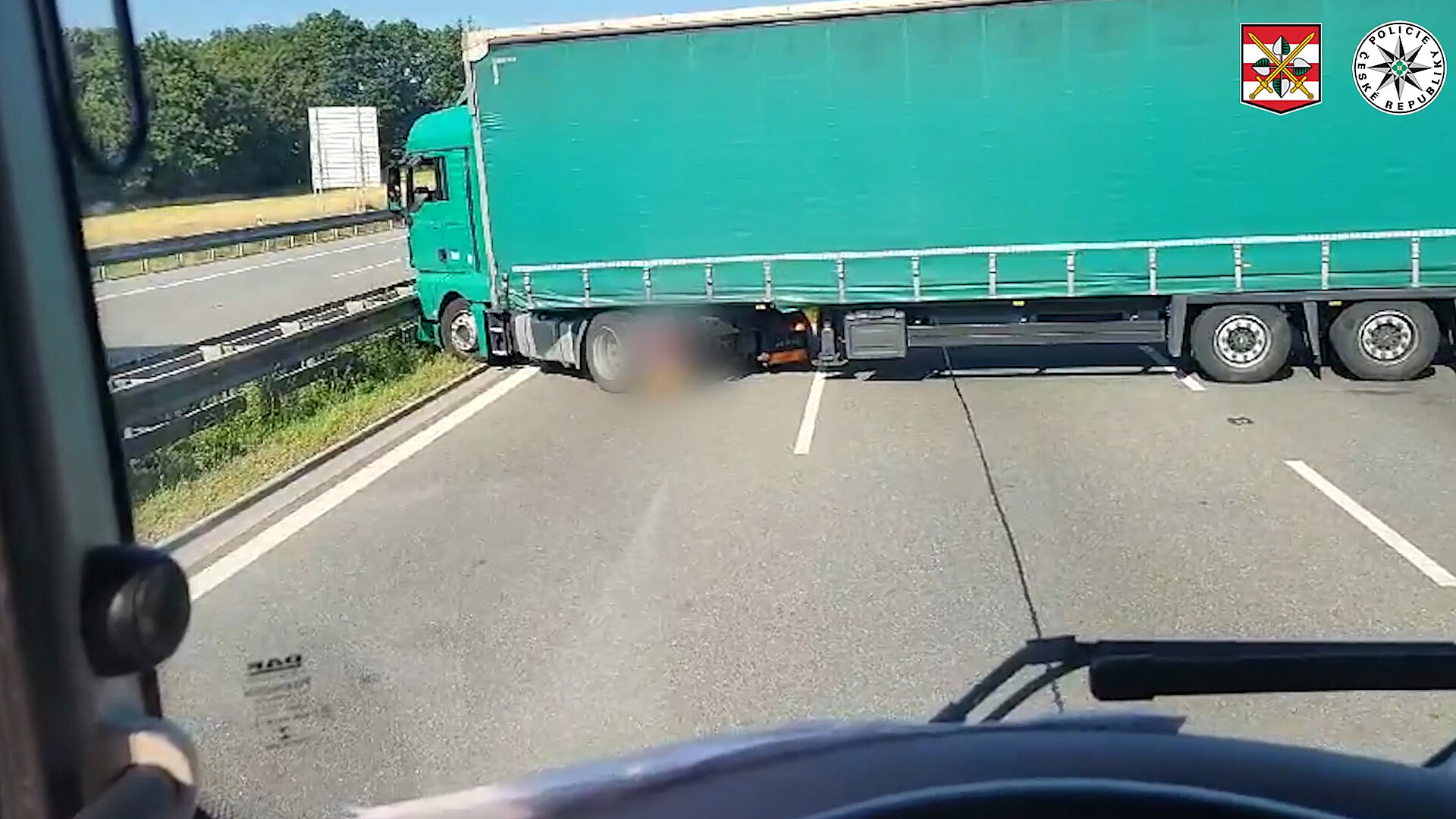 Opačným směrem se pokoušel vyjet z čerpací stanice na D1 zelený kamion, čímž dálnici na několik desítek sekund zablokoval. Když jej o něco později dostihli policisté, nadýchal zahraniční řidič 4 promile alkoholu.