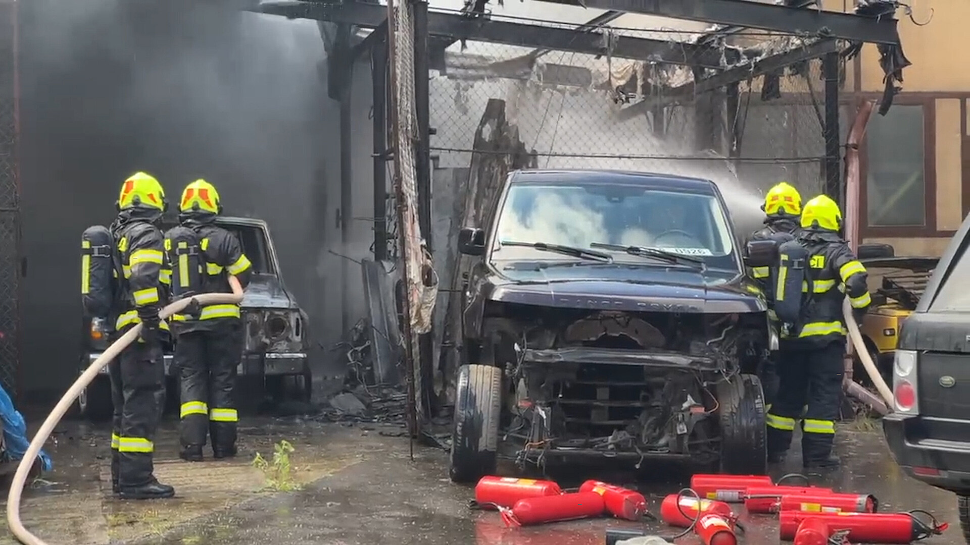 Několik jednotek zasahovalo u požáru autoservisu v ulici Podnikatelská v pražských Běchovicích. V požárem zasaženém objektu jsou tlakové lahve, hasiči nasadili několik vodních proudů. Nasazena musela být i výšková technika. Policisté nakonec museli vyklidili blízké okolí, protože na místo dorazili policejní odstřelovači, kteří měli za úkol na dálku zneškodnit tlakové lahve.